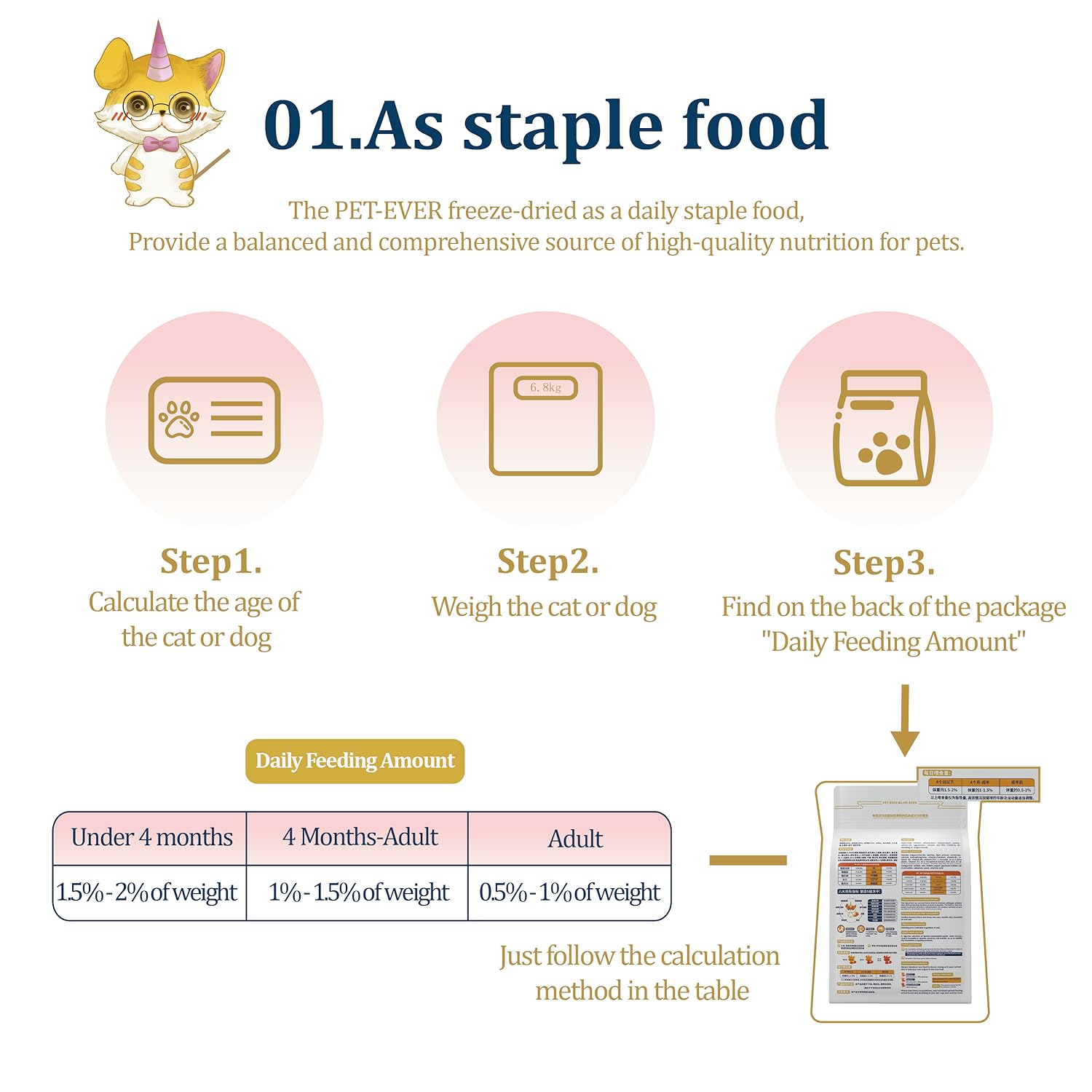 Cats short on vitamin E can suffer from slow growth, weak muscles, poor appetite and digestive upsets. Pet-Ever freeze-dried meals solve that risk in every bite: